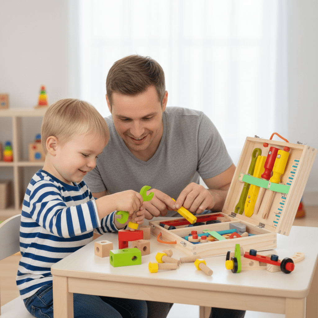 Barnas Verktøykasse i Tre for Byggeferdigheter
