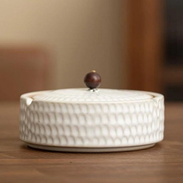 Designet med inspirasjon fra asiatisk stil, gir dette keramiske askebegeret et stilfullt preg til ethvert rom. Lokket forhindrer aske i å blåse bort og holder lukten inne, noe som gjør det ideelt for stuer, terrasser, balkonger og kontorer.