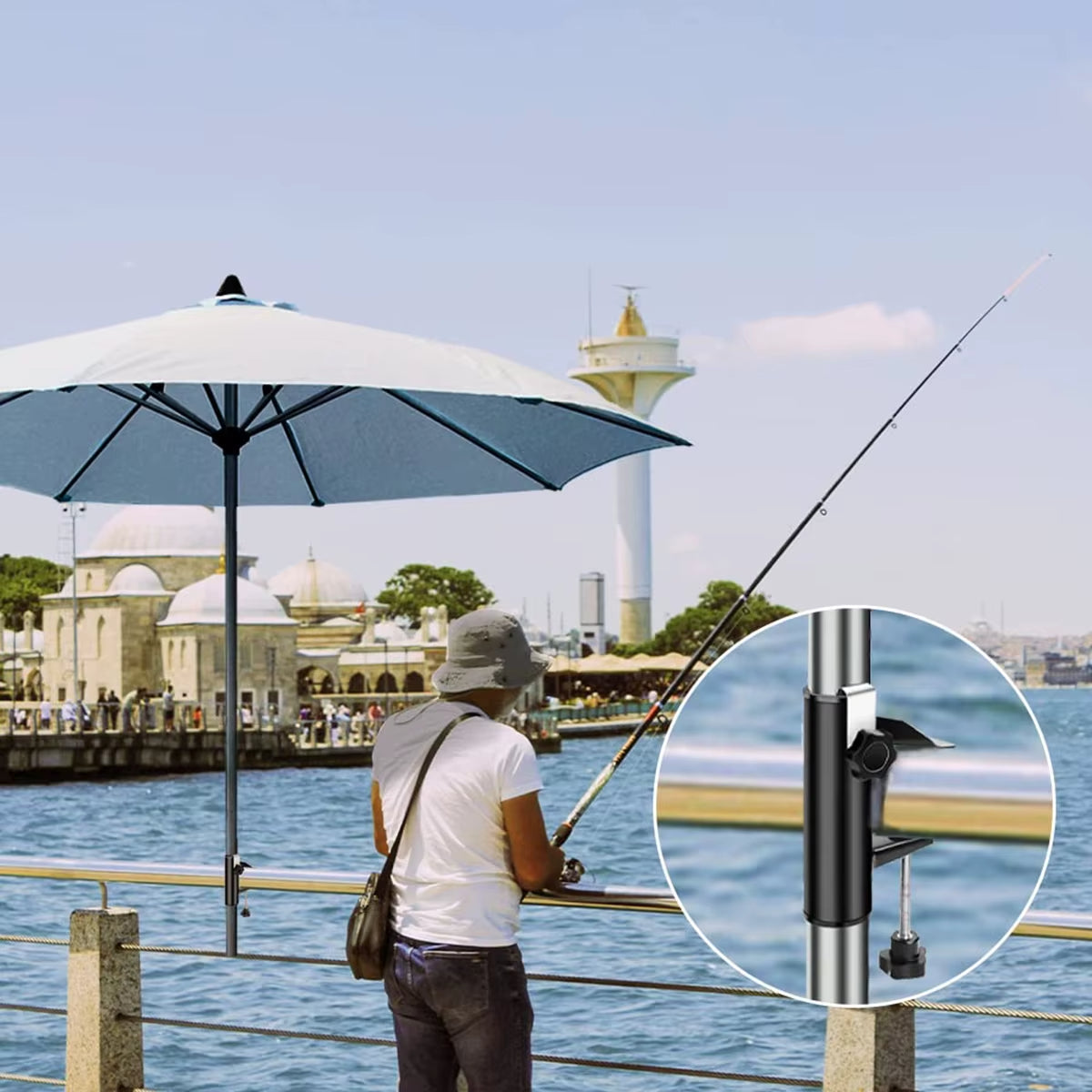 Med en robust konstruksjon og enkel montering, kan denne holderen festes til kvadratiske rekkverk eller bordkanter. Den passer til parasollstenger med en diameter på 19-38 mm, noe som gjør den ideell for bruk på balkonger, terrasser, gjerder og campingbord. Den gir deg muligheten til å maksimere plassen din uten å måtte bruke tunge parasollføtter.