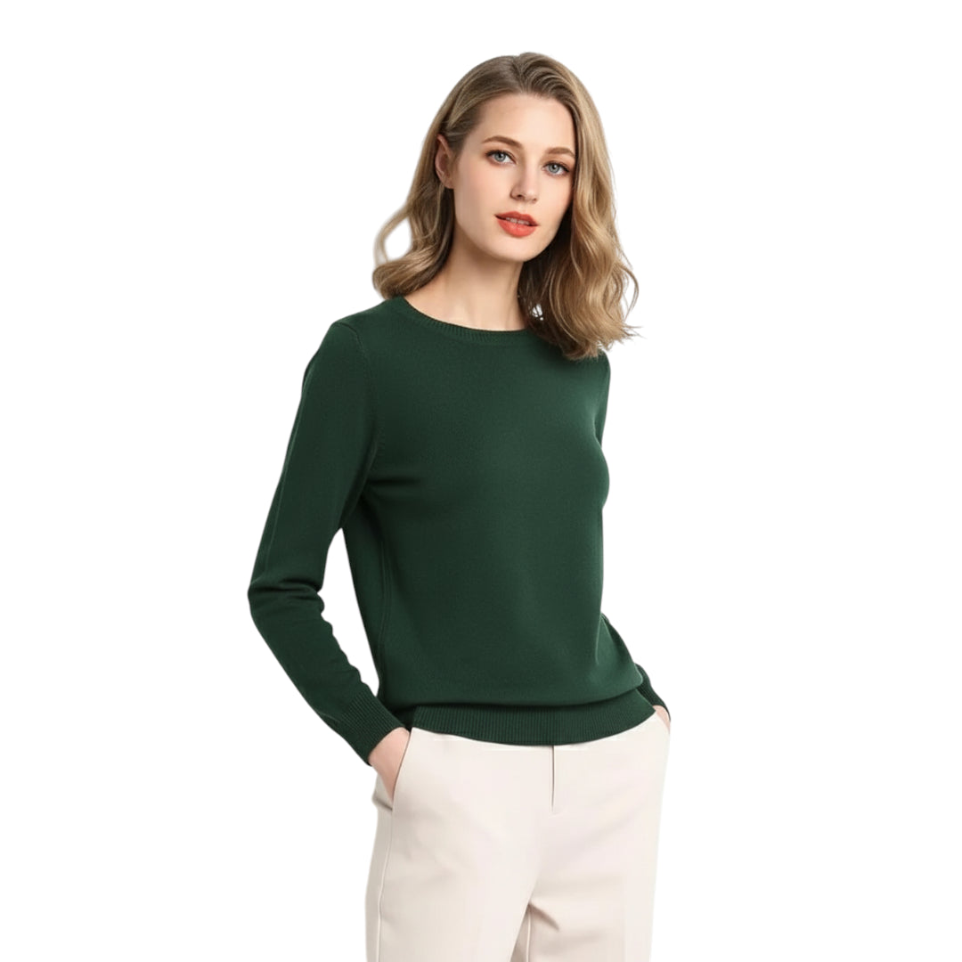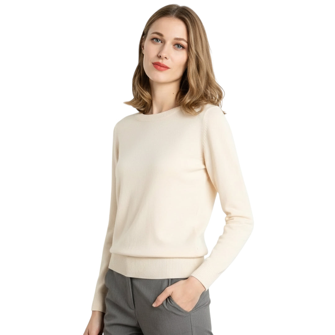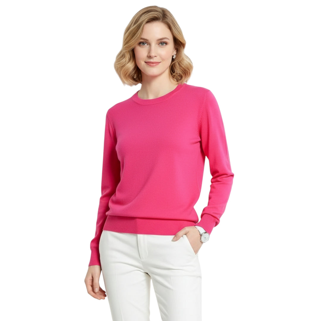 Dame Pullover Merino Ull O-Hals Langermet Strikket Topp