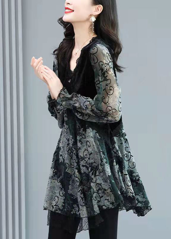 Dame V-hals Chiffon-stil Topper med Lagdeling
