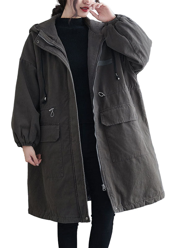 Dame Langermet Kåpe med Hette og Glidelåslommer